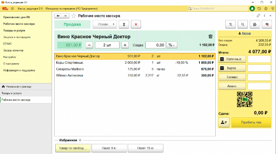 Приложение «1С:Касса» создано специально для малого розничного бизнеса как решение начального уровня для автоматизации торговли и ведения товарного учёта